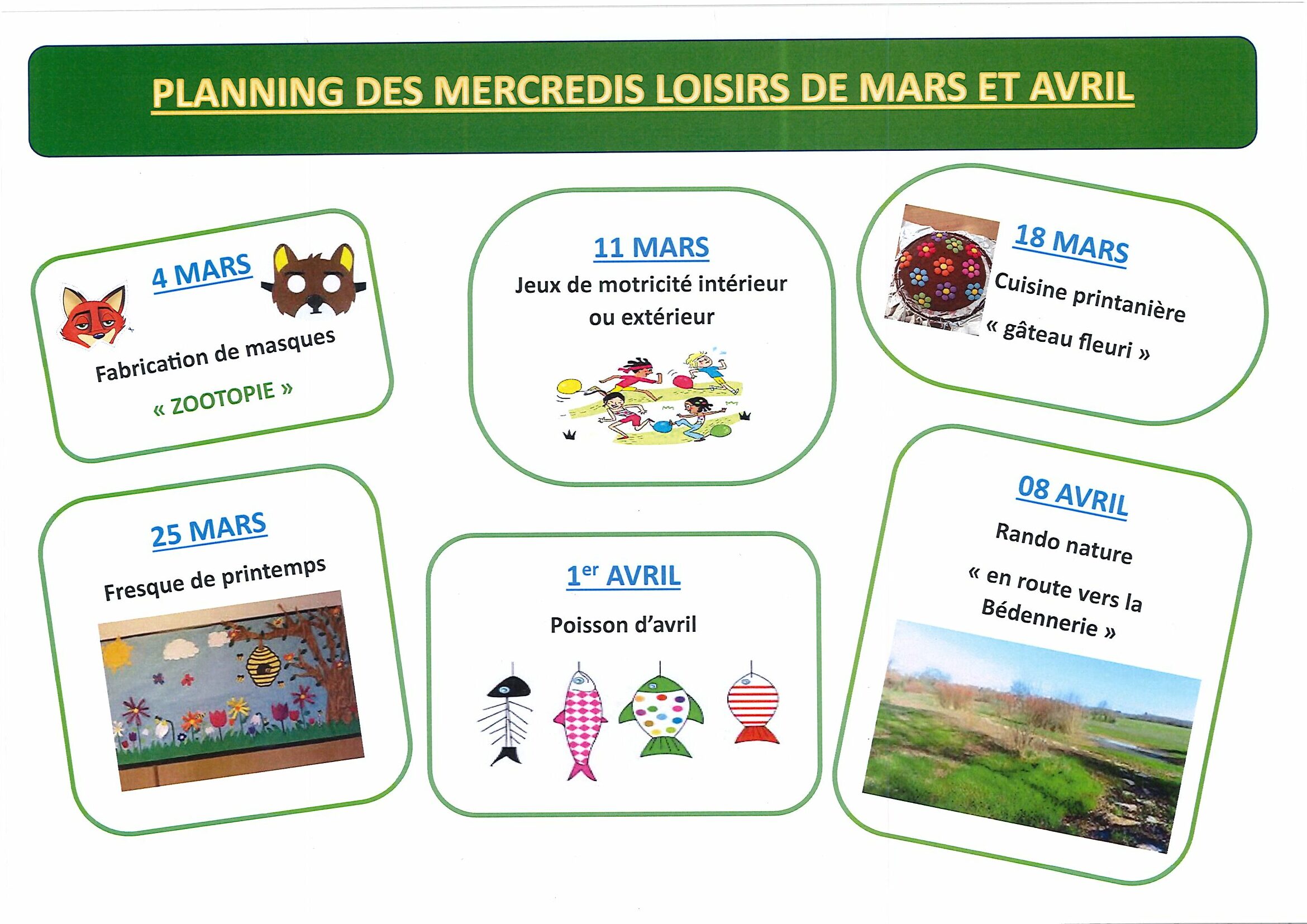 Programme des Mercredis Loisirs de Mars et Avril